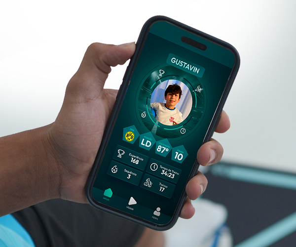 O app serve como um guia interativo de treinos, com vídeos, cronômetros e sistema de pontuação que motiva a evolução do jogador.